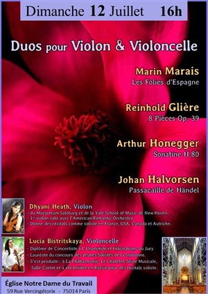 L’événement Marin Marais / Glière / Honegger / Halvorsen : Duos pour Violon & Violoncelle : de type Musique classique, organisé ici :