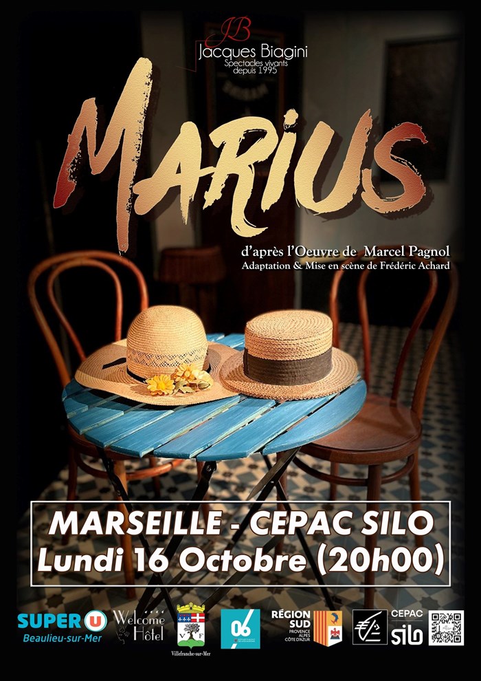 Marius, c'est l'histoire de la vie : des pères qui tiennent leur bar d'une main de fer, des mères qui élèvent seules leurs filles, des fils qui rêvent d'ailleurs, des filles qui rêvent d'amour, et des veufs qui rêvent d'avenir... Frédéric Achard fait revivre cette fresque aux accents Marseillais, en proposant à ses comédiens et aux spectateurs une modernité de ton et un va et vient de sentiments, cher à Pagnol : du rire à l'émotion.
