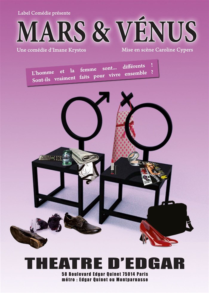 Mars et Vénus, ou l'inévitable odyssée d'un couple de terriens : autopsie d'une rencontre, d'une vie de couple pour le meilleur et pour le rire.