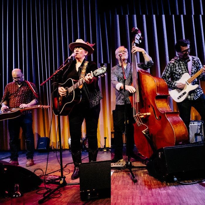 Tout capable de rendre également la beauté douce-amère de ses ballades, mais aussi "the perfect touch" avec le bodacious répertoire honky tonk. Son groupe, classe intergalactique des musiciens - Manu Bertrand (dobro, banjo, mandoline, Urbain Lambert (guitare), Serge Samyn (contrebasse), complètent parfaitement sa voix chargée d'émotion avec leur jeu exceptionnel.