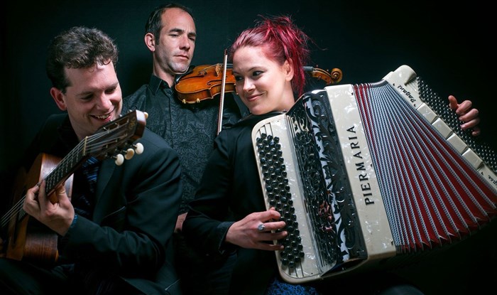 Ces trois complices font un savant et gai mélange de leurs influences diverses : ils improvisent dans des morceaux virtuoses, font pleurer ou danser les valses et les swings des grand maîtres, proposent des arrangements audacieux de pièces de concert écrites pour accordéon, tout en naviguant autour des musiques traditionnelles du Monde avec une