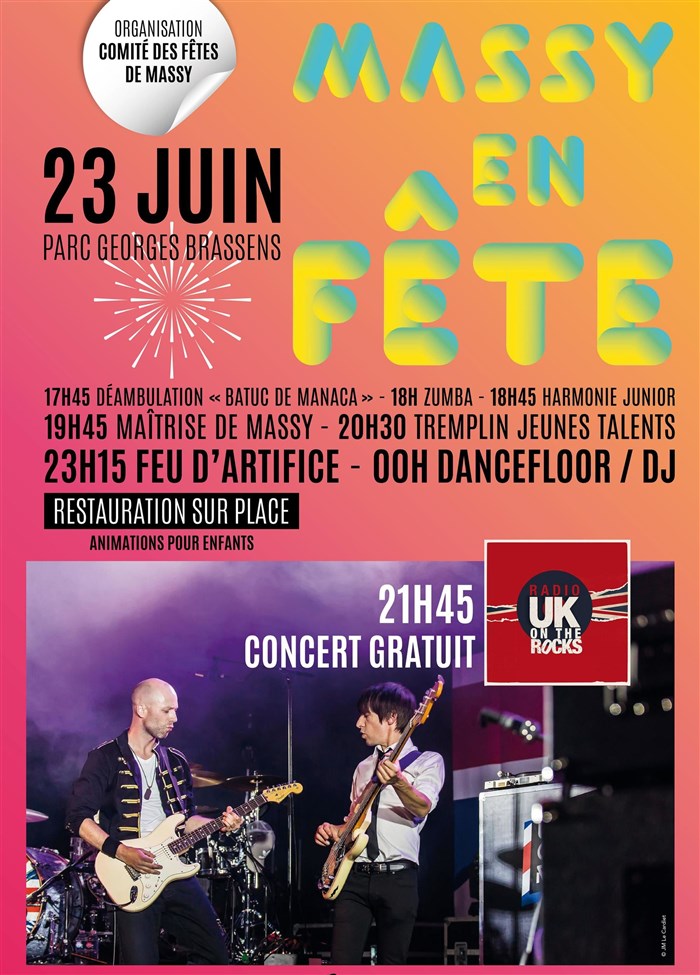 L’événement Massy en fête : Concert UK on the rocks & Feu d'artifice de type Plateau d'artistes, organisé ici :