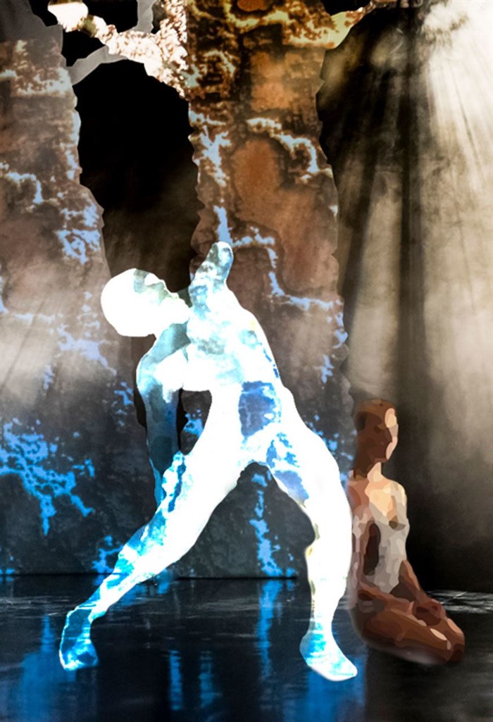 Quatre, danseurs évoluent dans un décor à l'atmosphère fabuleuse.
