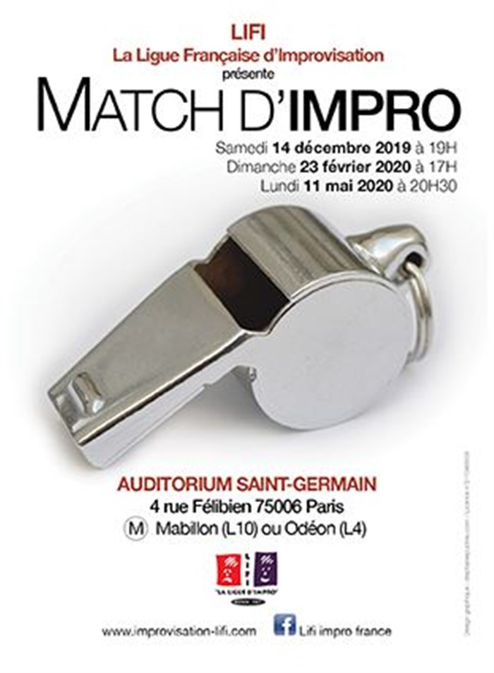 Créé en 1977 au Québec et joué depuis 1987 à la LIFI, le Match d'Improvisation est un concept de sport-théâtre qui réunit 2 équipes de joueurs s'affrontant sur des thèmes imposés par un arbitre, en totale improvisation. Les votes du public décident de l'issue de la compétition.