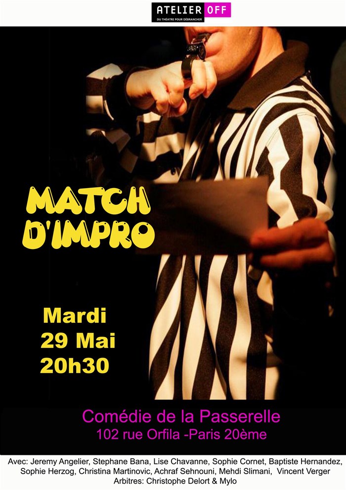 NB : le match d'improvisation est une joute théâtrale où se côtoient différents univers, personnages, situations et ambiances.
