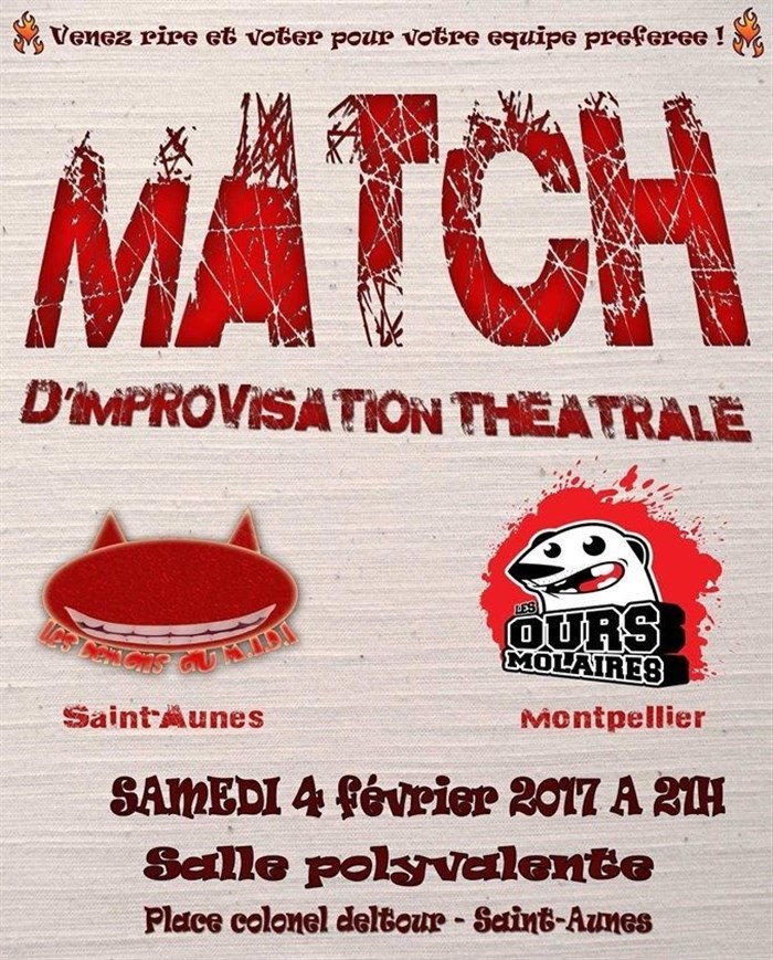 Un petit match d'impro sur Saint-Aunès ? Les Démons du M.I.D.I de Saint-Aunès invitent les voisins/copains Les Ours Molaires de Montpellier !