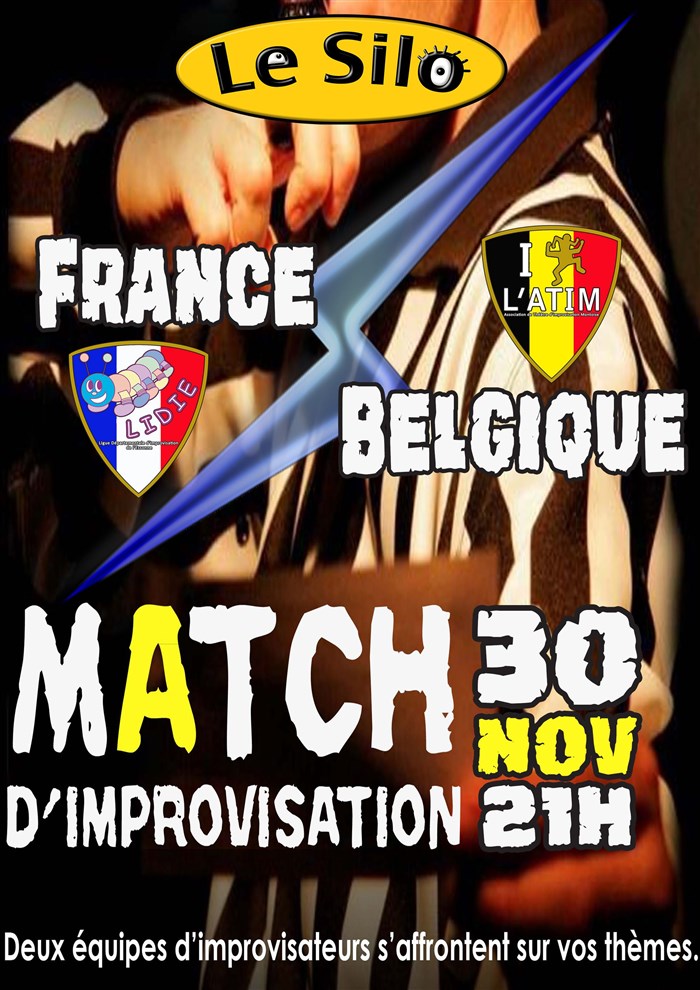 Les joueurs et joueuses de La L.I.D.I.E. (LIgue Départementale d'Improvisation en Essonne) auront la lourde responsabilité de représenter la France face à l'équipe de L'ATIM (L'Association de Théâtre d'Improvisation Montoise) qui, en véritables diables rouges de l'improvisation Belge, défendrons bec et ongles les couleurs du plat pays qui est le leur...