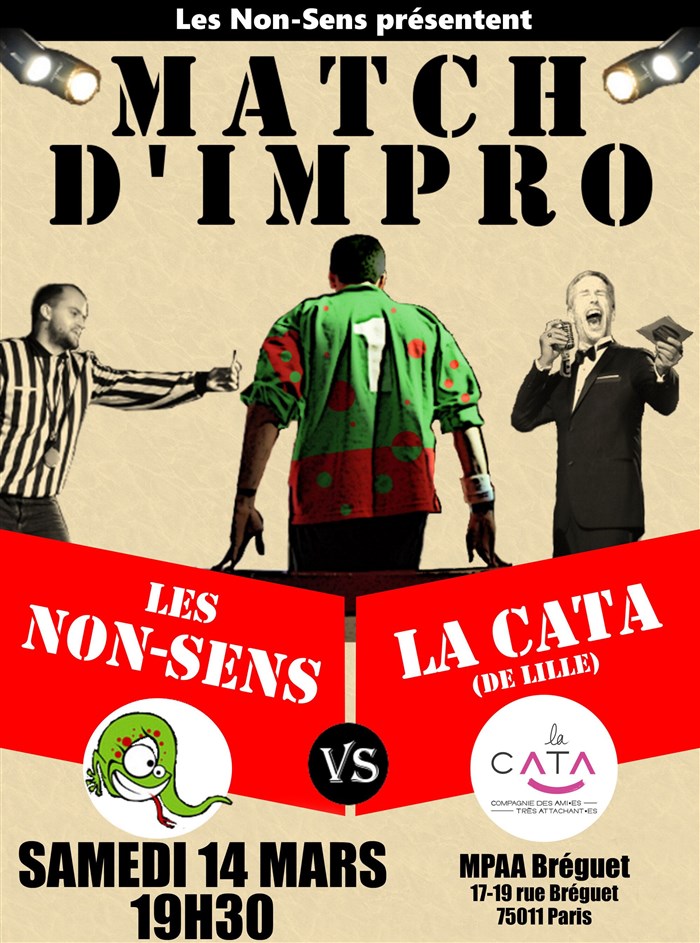 Découvre Match d'impro : Les Non Sens rencontrent la Cata, qui fait partie de notre sélection d’événements de type Comédie et qui se tient ici : MPAA/Breguet -