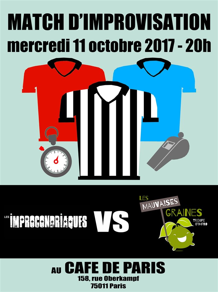 Pour leur premier match de la saison les Improcondriaques reçevront l'équipe Les Mauvaises Graines : troupe d'improvisation qui vient d'Issy-les-Moulineaux.