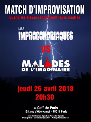 L’événement Match d'Improvisation : Les Improcondriaques vs Les malades de l'Imaginaire de type Improvisation, organisé ici : Café de Paris -
