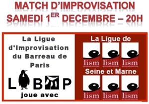 L’événement Match d'Improvisation : Ligue d'Improvisation du Barreau de Paris et Ligue de Seine et Marne de type Improvisation, organisé ici :