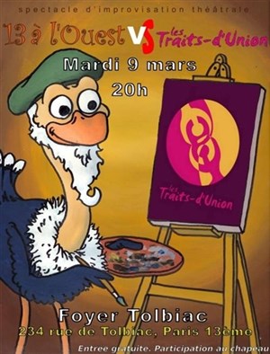 L’événement Match d'improvisation traits d'union vs 13 à l'ouest de type Improvisation, organisé ici : Foyer Tolbiac -