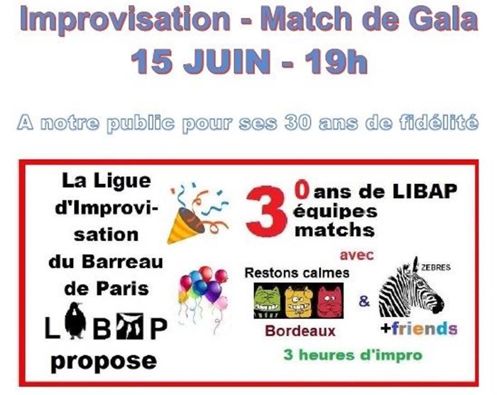 Tu veux savoir ce qu’ont pensé les spectateurs et la presse de cet événement : Match de Gala 30 ans de Libap - Salle du Patronage Laïc du XVème ? Découvre leurs avis éclairés et prépare-toi à vivre un moment d’exception à ton tour en réservant tes places !