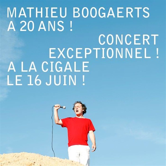 L’événement Mathieu Boogaerts a 20 ans ! de type Chanson Française, organisé ici :