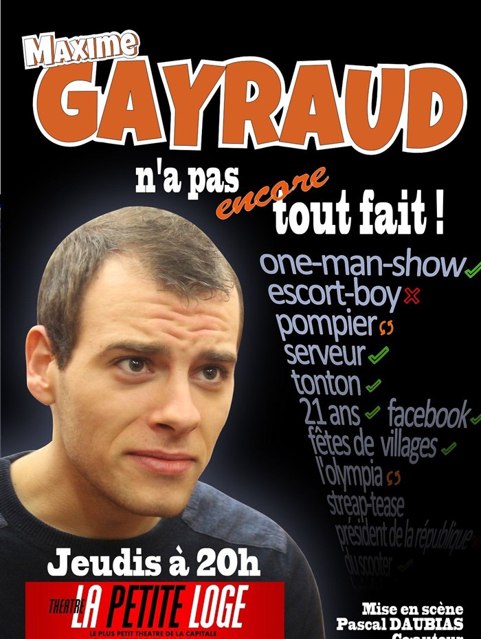 Maxime Gayraud est un jeune comédien très talentueux. J'ai beaucoup ri en allant voir son spectacle hier soir.