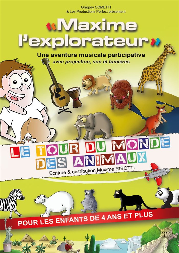Découvre Maxime l'explorateur : le tour du monde des animaux, qui fait partie de notre sélection d’événements de type Spectacles enfants et qui se tient ici : Le Paris -