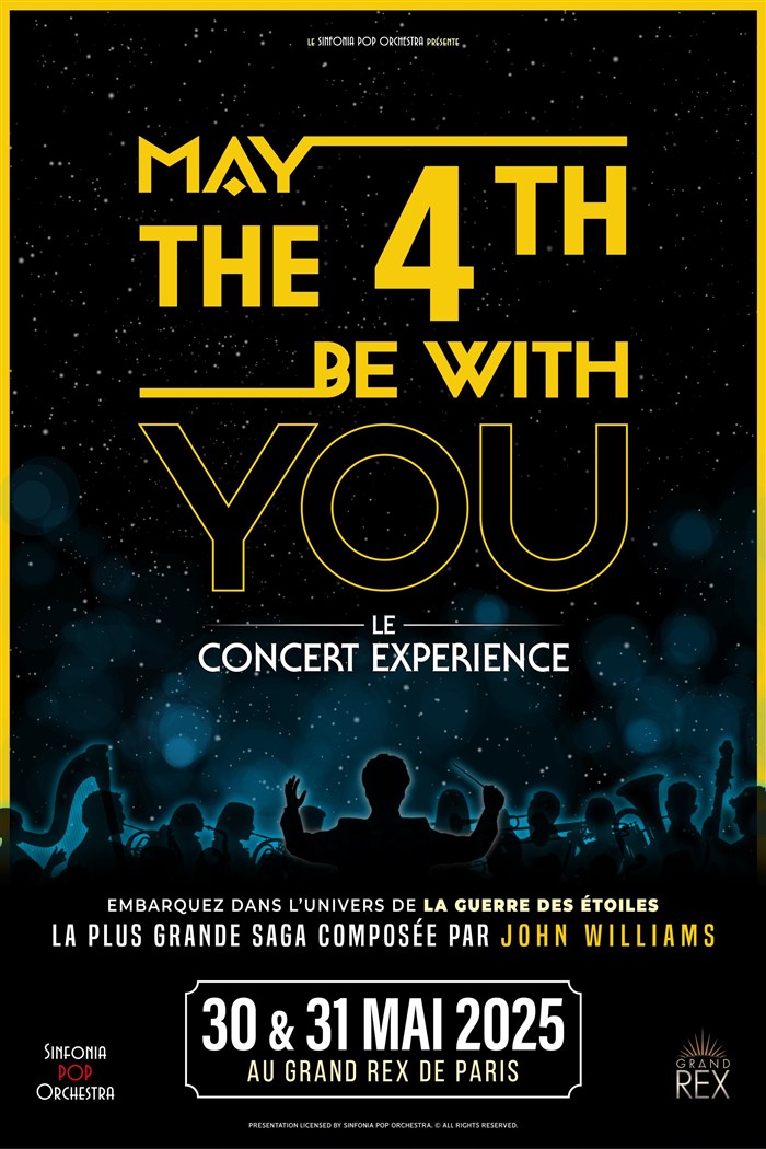 En Mai 2024, le Sinfonia Pop Orchestra produit le concert May the 4th be with you pour le plus grand bonheur des fans de Star Wars. Ce spectacle immersif mêlant musique et théâtre réunit près de 7 500 spectateurs au Grand Rex de Paris.