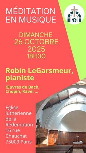 Découvre Méditation en musique, qui fait partie de notre sélection d’événements de type Gospel et qui se tient ici : Eglise luthérienne de la Rédemption -