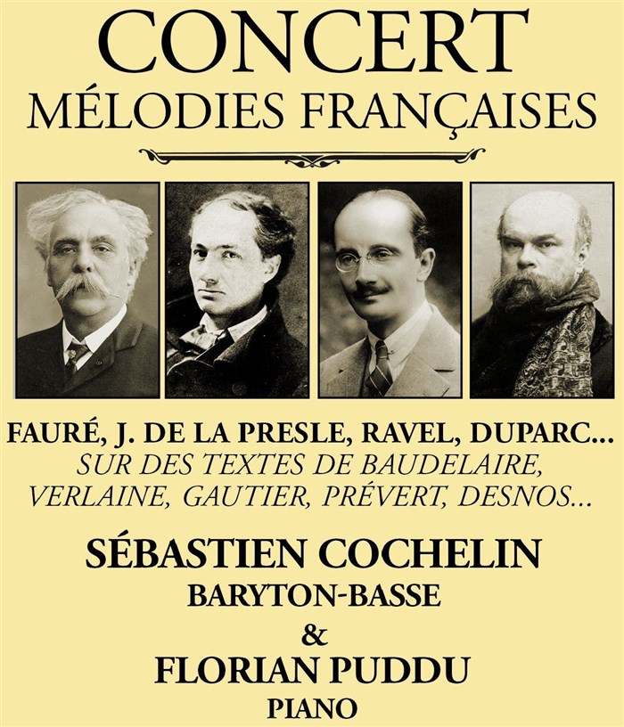 Les grands compositeurs français Berlioz, Fauré, Debussy, Ravel, Duparc, de la Presle, Poulenc, Kosma et les grands noms de la poésie française Gautier, Verlaine, Mallarmé, Baudelaire, Verhaeren, Desnos, Prévert se rencontrent autour de la mélodie.