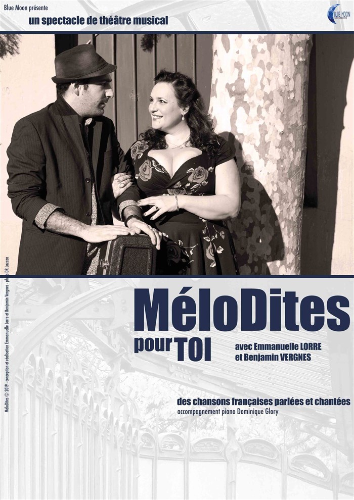 "MéloDites pour Toi" est un lien entre le Public, la Chanson Française et le Théâtre. Avec toujours cet amour du mot, de la langue française. Un piano intimiste, l'authenticité acoustique des cordes d'une guitare qui, elle, prend part à l'action, se mêlent aux voix parlées et chantées des deux comédiens qui nous transportent dans une tragi-comédie musicale en trois actes. ?