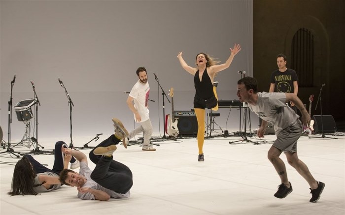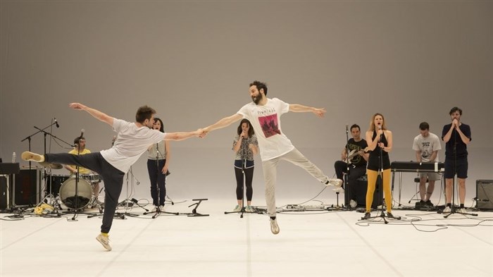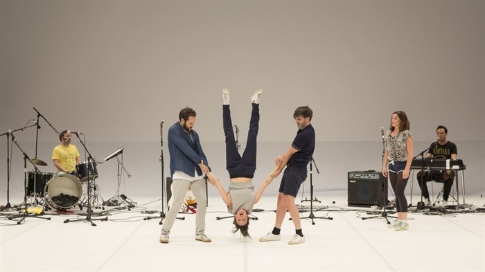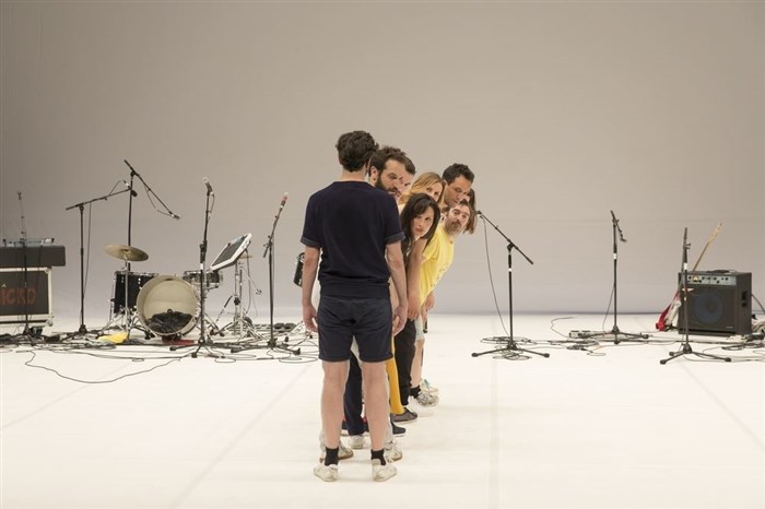 Neuf danseurs performeurs s'agitent et dansent. Ils recommencent en boucle un même morceau, mêmes sons et mêmes mouvements, musique "transrock". Un grain de sable dans la machinerie quand l'un d'eux arrive en retard au spectacle. Tout s'emballe. Fête jouissive d'une impossible reproduction d'un même geste qui se change en son contraire. Les gags à la Buster Keaton entraînent une chorégraphie tonique, comédie musicale expérimentale d'une énergie dingue.