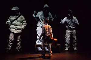 Là, où le poétique prend parfois l'accent de la banlieue. Tissant un habile dialogue entre le théâtre et la vidéo, Matthieu Roy se saisit de la peau, ce que nous avons de plus extérieur, pour toucher au plus intime.