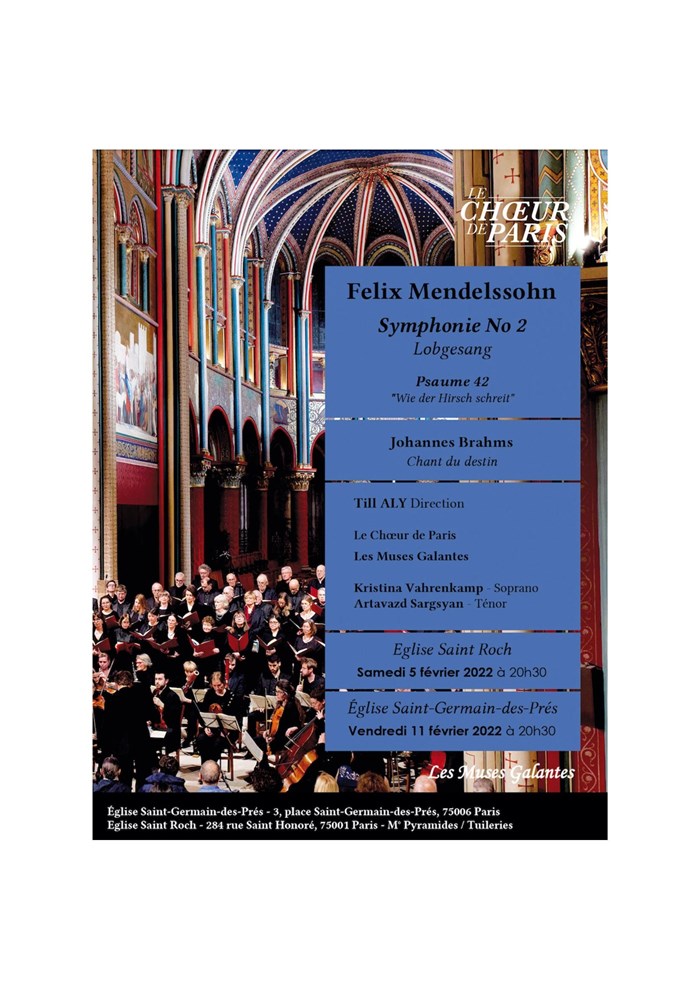Un concert unique qui met à l'honneur le romantisme allemand et donne la parole à deux compositeurs d'exception dans une programmation unique : Mendelssohn : Deuxième symphonie "Lobgesang" et le Psaume 42 et Brahms "Le chant du destin"