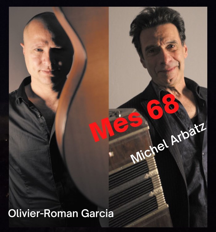A mes côtés, le guitariste funambule Olivier-Roman Garcia ; entre mes mains, ma boîte à soupirs : le bandonéon.