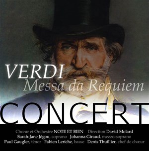 Au programme, Messa da Requiem de Verdi avec Sarah-Jane Jégou, soprano ; Johanna Giraud, mezzo-soprano ; Paul Gaugler, ténor ; Fabien Leriche, basse ; sous la direction de David Molard et Denis Thuillier, chef de choeur.
