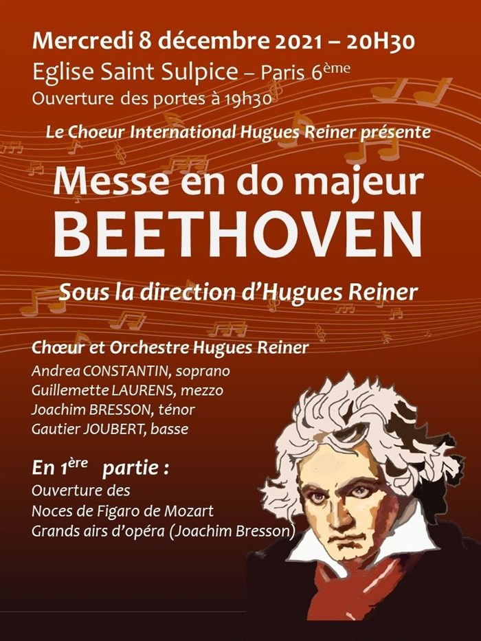 En 2ème partie : le Choeur (plus de 100 choristes) et l'orchestre Hugues Reiner interprèteront la Messe en do majeur de Beethoven Avec :