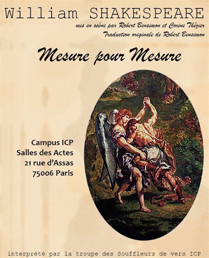 La troupe des Souffleurs de Vers ICP vous présente les représentations d'une traduction nouvelle de Mesure pour Mesure de William Shakespeare.