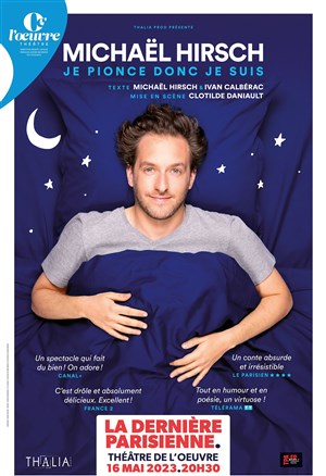 L’événement Michaël Hirsch dans Je pionce donc je suis de type One man show, organisé ici : Théâtre de l'Oeuvre - Paris, n'est plus disponible à la vente.