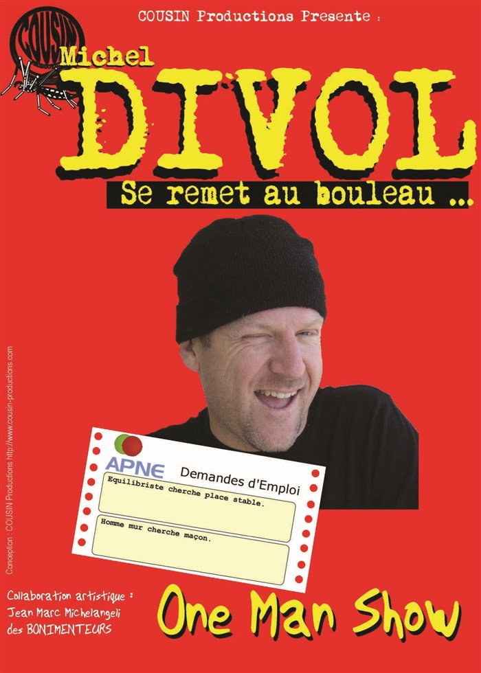 Voir plusUn super spectacle, des jeux de mots, la participation du public, le contact, des rires, des fou rires..... tout y était!! Michel Divol est à la fois une boule d'énergie à la Tex Avery et un artiste généreux qui voue un grand respect à son public. Ses propos sont intelligents et rythmés, ponctué de vannes percutantes et délirantes. Je recommande cette comédie!