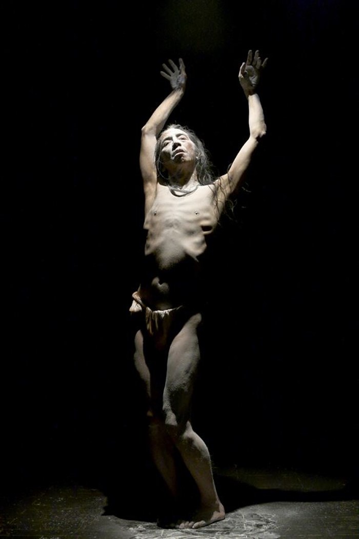 A travers la danse butô et son spectacle, Atsushi Takenouchi rend hommage aux victimes du récent tremblement de terre japonais.