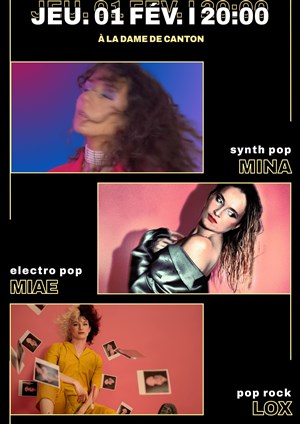 L’événement Mina + Miae + Lox de type Pop / Rock / Folk, organisé ici :