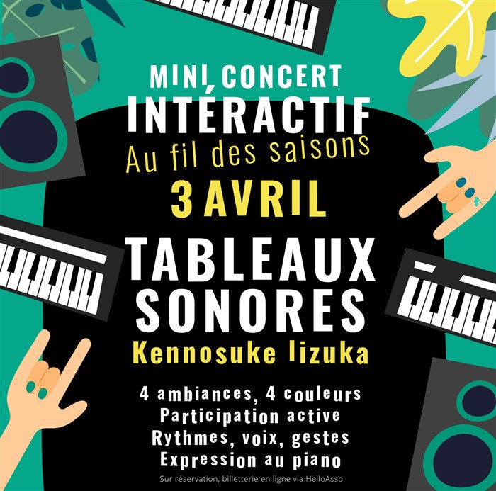 L'association Amabile – Enseignement Musical propose un mini-concert interactif pour enfants autour du thème " Au fil des saisons ", interprété par Kennosuke Iizuka, professeur de piano de l'association. Pensé comme un moment vivant, accessible et participatif, ce rendez-vous invite les plus jeunes à découvrir le piano autrement, à travers quatre ambiances et quatre couleurs sonores inspirées des saisons.