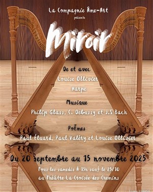 Miroir est un concert scénographié pour harpe seule, conçu comme une expérience sensorielle et méditative. À travers les oeuvres de Philip Glass, Bach et Debussy, Louise Ollivier explore les notions de cycle, de reflet et de suspension. Le dispositif scénique, mêlant jeux de lumière et miroirs, crée un espace poétique et immersif, où le son et l'image se répondent. Ce solo invite à une écoute intime et introspective, et propose un temps suspendu entre musique, silence et lumière. Une forme hybride entre concert classique et installation visuelle, pensée pour des lieux propices à l'attention et à la proximité.