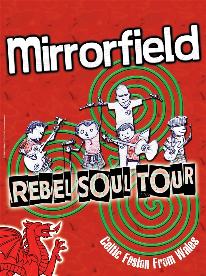 A travers la fusion des styles et des origines traditionnelles de la musique d'Outre-manche, MirrorField distribue son bonheur sur scène et dans la foule, pour que petits et grands puissent danser sur ses rythmes endiablés, amusés par le cocktail festif de cinq troubadours polyglottes (français, anglais, gallois, breton, gaélique...).