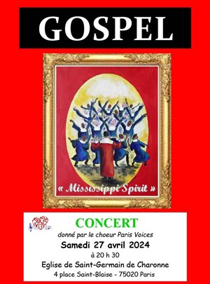Avec l'interprétation de vingt gospels, spirituals et work songs, le choeur Paris Voices, vous invite à une balade musicale le long du fleuve Mississippi, pour retrouver toute l'âme de ces chants, pleins de ferveur, de mélancolie ou de joie et d'intensité.
