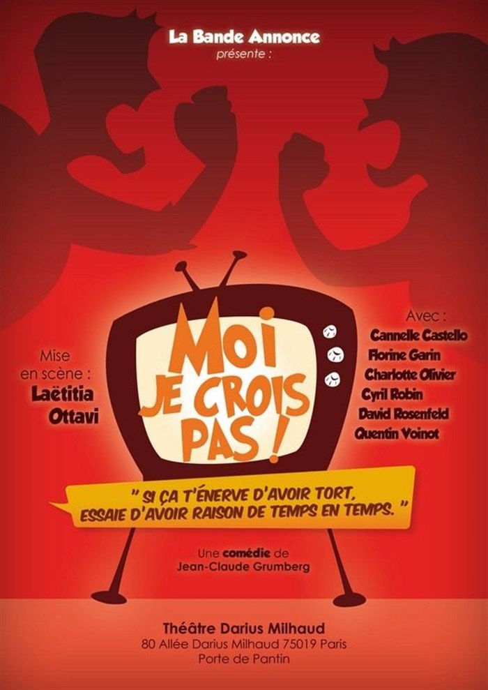 6 comediens, droles, justes et cocasses, nous immergent dans le quotidien d'un couple aimant. Au programme, comiques de situation et jeux de mots,quiproquos et questions existentielles. Nous avons tous, un jour, connu pareils moments. Nous croyons tous en l'amour et pourtant, nous avons tous déjà dit "Moi je crois pas". Ruez-vous.