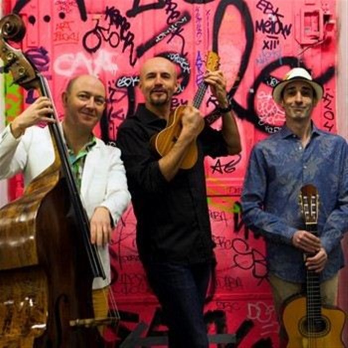 Accompagné des enfants sages : Nathan Dallerac à la batterie et Leanna Inzallaco à l'accordéon, ce trio riche en personnalité et en talent sait partager le plaisir qu'il a à jouer.