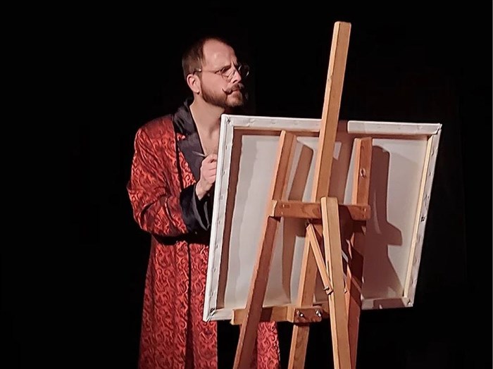 La pièce, inspirée originellement d'une oeuvre d'Oscar Wilde "Le Portrait de Dorian Gray", roman éclairant la décadence de la haute société anglaise masquée de pudibonderie du 19ème siècle, joue avec les époques et se lit également comme une intrigue policière : Gaëtan manoeuvre son petit monde pour amener chacun là où il doit être, du moins là où le peintre veut qu'il soit. Mais quel tableau veut-il faire apparaître sous vos yeux ?