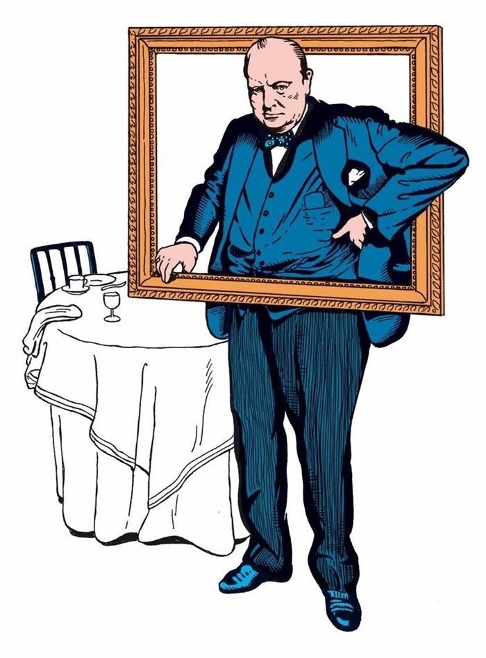 Churchill ne viendra pas dîner. Et pour cause. Il est mort depuis cinquante-quatre ans. Mais Charles attend l'illustre bonhomme, lui parle, endosse un tablier, prépare le repas. Champagne, six bouteilles, et cigares ad hoc. Charles est seul, dépressif et alcoolique, points communs avec son mentor en retard. Il répond au téléphone, agent d'assurances, tente de sauver un conducteur perdu en Bavière et en panne. Le voisin se fâche, trop de bruit. Charles se réfugie sous l'aile et les mots de Churchill. C'est l'Europe d'aujourd'hui, Brexit compris, qu'il évoque avec le maître. Déjà, il y a trois ans, avec Moi et François Mitterrand au Rond-Point, Hervé Le Tellier dressait le drôle de portrait d'un type banal, second couteau à vie, qui croyait côtoyer l'un des maîtres de l'Histoire.