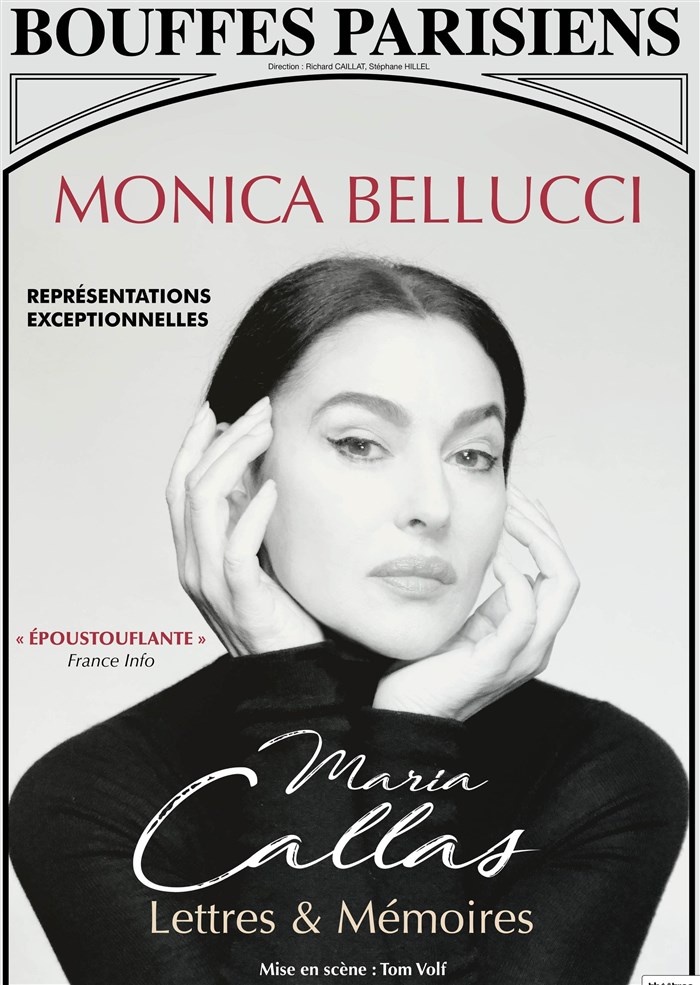 L’événement Monica Bellucci : Lettres et mémoires de Maria Callas de type Seul(e) en Scène, organisé ici :