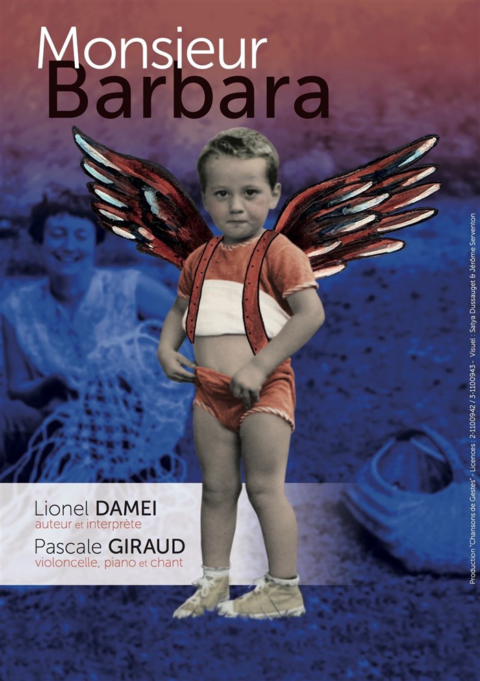 Spectacle musical et théâtral, Monsieur Barbara est composé d'une musicienne polymorphe (violoncelle, piano, voix) Pascale Giraud, et d'un artiste pluriel et singulier, à la fois acteur, auteur et chanteur Lionel Damei. Ce duo nous livre avec une passion dévorante les chansons de Barbara moins " attendues-entendues " et les leurs, ainsi que l'histoire qui les relie, grande, petite, intime, universelle.