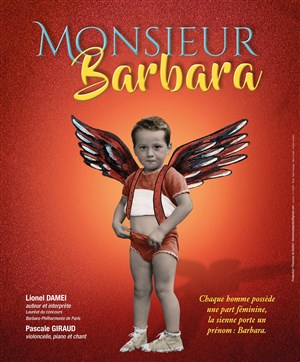 Monsieur Barbara, c'est l'histoire d'un petit garçon qui se prend pour une autre, une femme qui chante. Et elle chante si-haut-si-beau-si-fort, que ça lui donne l'envie de la rejoindre avec ses ailes en chiffons dans le ciel de ses théâtres, et d'y tracer son propre chemin de lumière. Il déroule alors les chansons de sa vie au rythme de celles de la Dame Brune, petites et grandes histoires entremêlées.