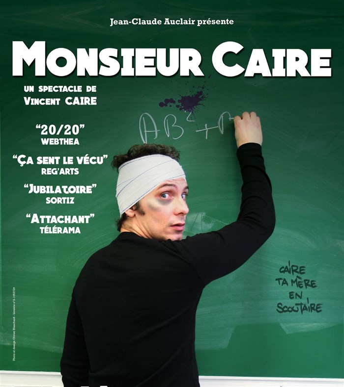Un seul en scène inspiré de la véritable expérience de Vincent Caire, qui après plus de 10 ans d'enseignement dans des quartiers difficiles se délecte à travers cette comédie, à mettre en lumière les disfonctionnements ahurissants de notre système éducatif.