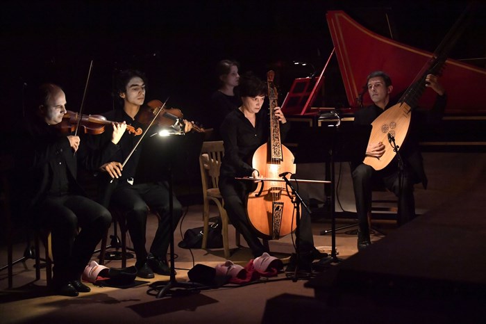 Sur scène, quinze artistes, qu'ils soient musiciens, chanteurs ou comédiens font vivre ce spectacle dans la pure tradition des comédies-ballets et nous entraînent dans l'ambiance des divertissements royaux.