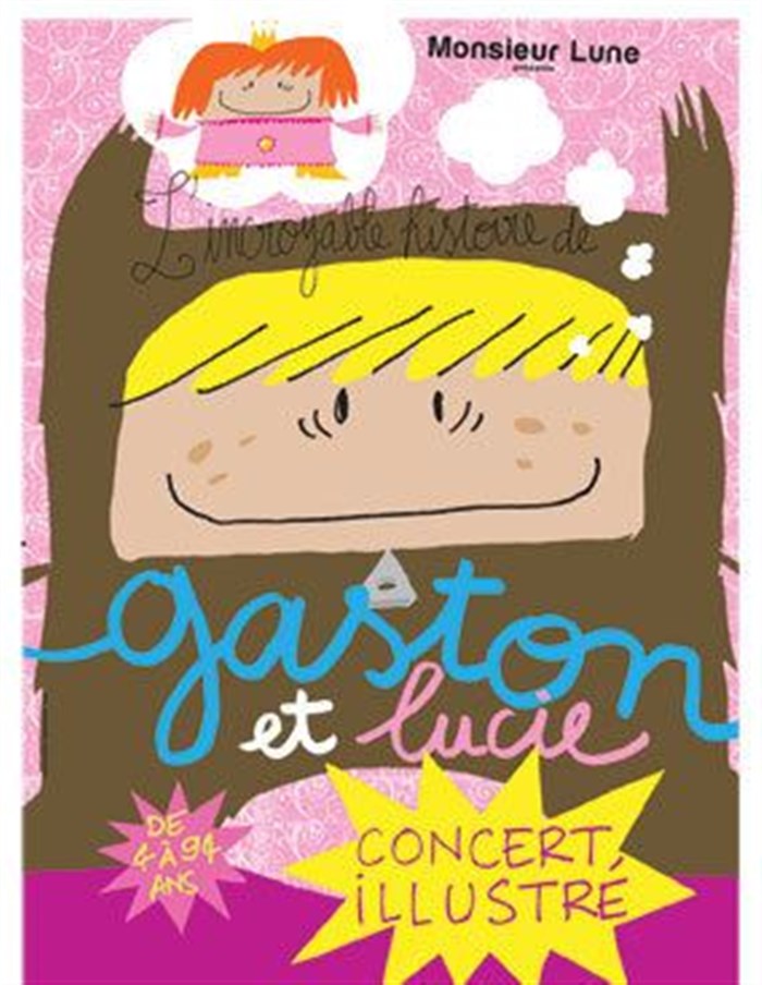 Composé et co-écrit par Monsieur Lune, le livre-disque " L'incroyable histoire de Gaston et Lucie " est porté par les voix de la " nouvelle chanson française " (Carmen Maria Véga, Yves Jamait, Monsieur Lune, Gérald Genty, Ben Ricour, Oldelaf et Monsieur D, Cécile Hercule). Le spectacle prend la forme d'un concert illustré, mêlant live, bande-son cinématographique et dessins animés tirés du livre-disque. Cette histoire poétique, à l'interprétation joyeuse est servie par des dialogues pleins d'humour, de second degré, loin des stéréotypes des productions pour enfants.