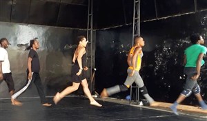 Au rythme des percussions, de la guitare, de la basse et du chant, ces corps d'hommes et de femmes s'engagent dans la bataille, déployant une danse intense, organique, proche de la transe. En miroir de son vécu, la danse de DeLaVallet Bidiefono se montre puissante, presque endiablée...